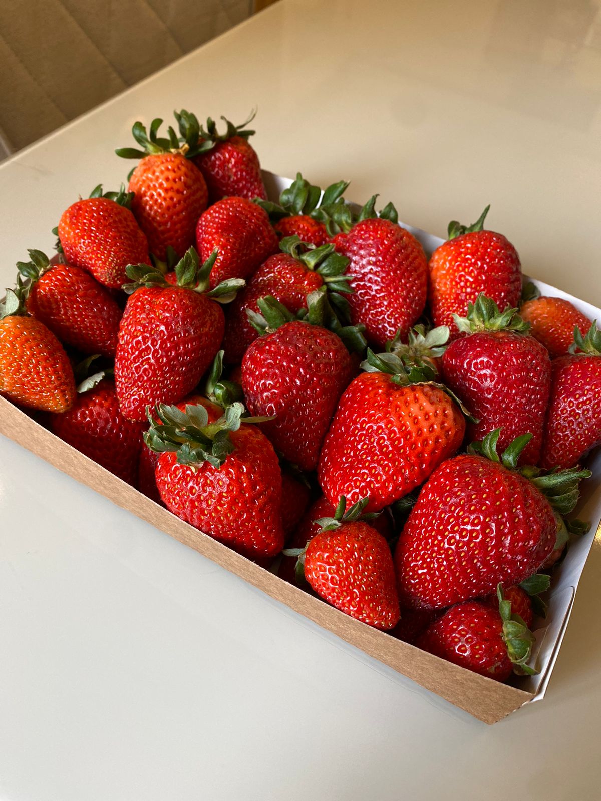 Box de 1Kg de Morangos selecionados, as frutas são livres de agrotóxico e com tamanhos grandes.